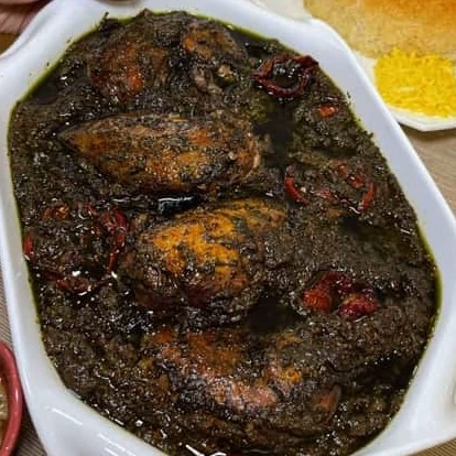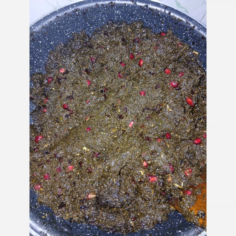سبزی مرغ ترش سرخ شده ترکیب با مغز گردو ورب انار اماده طبخ گیلان.رشت