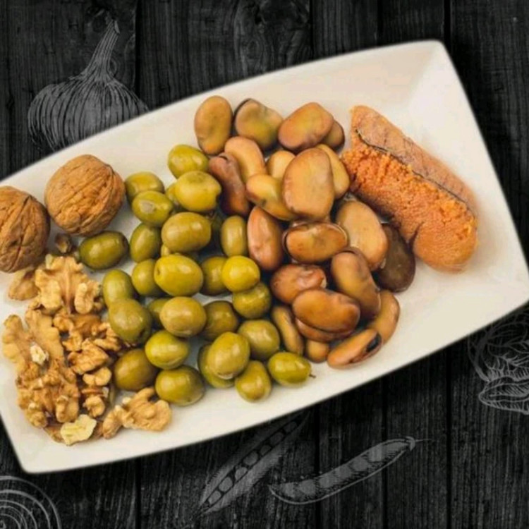 اشپل باقلای گیلان (گردوی سفید محلی،سیر محلی تازه،اشپل ماهی سفید،باقلای خام،زیتون )500 گرمی گیلان .رشت